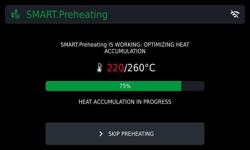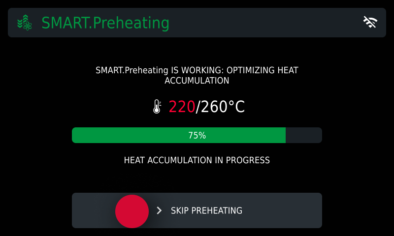 To stop preheating at any time, whether manual or SMART.Preheating, press the skip key.