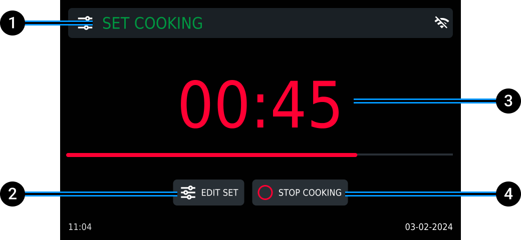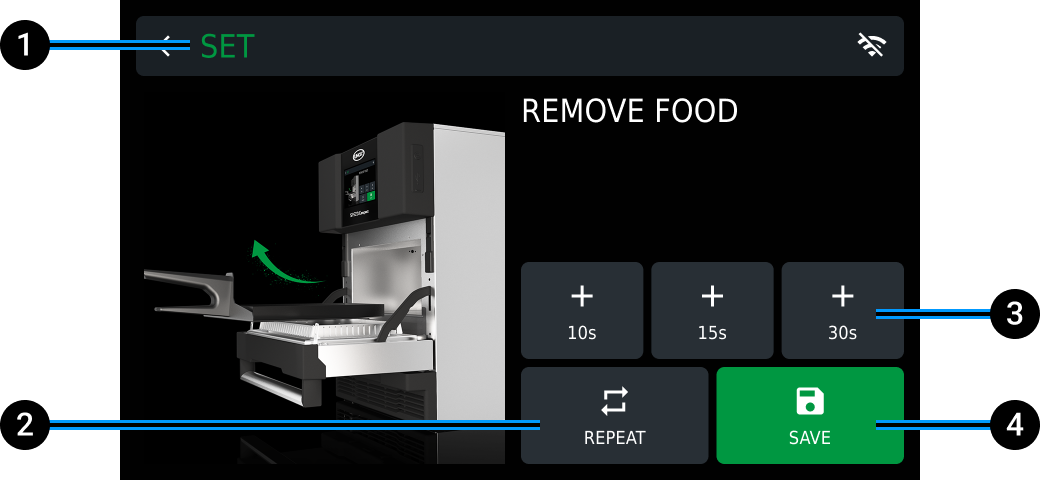 Remove a cooking phase: it sets the cooking time to 00:00. After you start or save a setting, these and the subsequent phases will be removed.