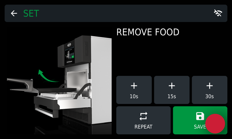 If you skip this step, or if the cavity’s temperature is not set correctly, tap the temperature bar on the top of the main screen to access the preset selection page.